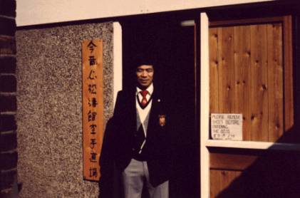 KANAZAWA SENSEI OUTSIDE DAVE KERSHAW'S HOME DOJO IN GRIMSBY. ALAS NOW NO LONGER IN EXISTENCE.